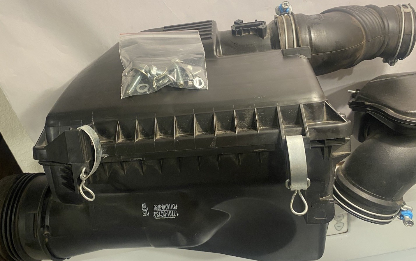 The OEM Toyota Tacoma 2005-2022 Cap Sub-Assy, Air Cleaner 17705-0C121 is a replacement part specifically designed for the secondary air and smog pumps system in Toyota vehicles. This genuine Toyota part ensures quality and compatibility with the vehicle's emission control system, providing a reliable solution for maintaining the performance and efficiency of the car. With supersession number 17705-0C120, this cap sub-assy is a crucial component for keeping your Toyota Tacoma compliant with emission regulations and ensuring optimal functioning of the vehicle's air cleaner system. Ok guys here it is!! Here is all the factory components off a Toyota Tacoma to convert vehicle back over to pass smog.. this person chose K&N which was a mistake as those intakes wont pass the visual. This is everything down to the factory bolts. I even got a bag of hoses I’m going to include. This all is off a 2021 so it’s super clean stuff.. no returns