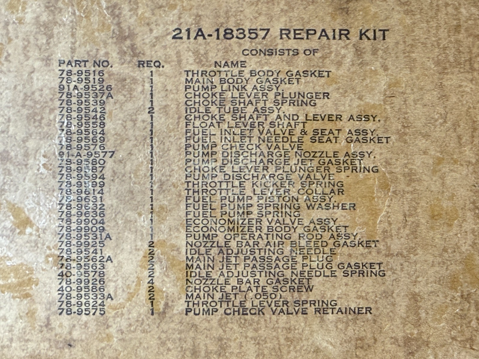 OFL-STK-No3320 21A 18357 Ford Repair Kit Carburetor