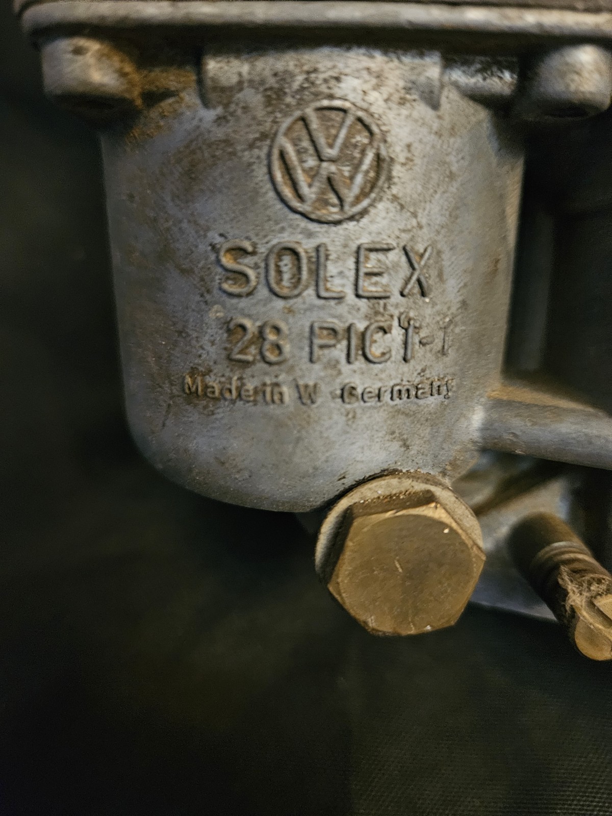 Up for sale is an original German-made Volkswagen Solex 28 PICT-1 carburetor, correct for early VW Type 1 Beetle, Type 2 Bus/Transporter, and other air-cooled applications. This is a genuine VW/Solex unit manufactured in Germany, not a reproduction. All external linkage and throttle components move freely, but the carburetor has not been tested, bench-run, or rebuilt. Ideal for restoration, rebuilding, or for collectors seeking correct OEM parts for an early VW engine. These early German Solex carbs are becoming harder to find in restorable condition. \-\-\- Condition Original German Solex 28 PICT-1 Throttle/linkage moves freely Untested – may require cleaning or rebuild Surface wear, oxidation, and patina present (see photos) All parts included are shown in the pictures \-\-\- Fitment Correct for: Volkswagen Type 1 Beetle / Bug (early 1960s) Volkswagen Type 2 Transporter / Bus Air-cooled VW engines originally using 28 series Solex carbs Always verify compatibility with your engine code and year. \-\-\- Features Authentic Made in Germany VW/Solex carburetor OEM 28 PICT-1 model Great core for rebuild Classic air-cooled VW part Good for restorations, refresh builds, or collection display \-\-\- Shipping Shipped securely with padding to protect all components. vw beetle carb, vw bug carburetor, vw bus carb, solex 28 pict1, aircooled vw carb, german vw parts, transporter carburetor, vintage vw engine parts, oem vw carb