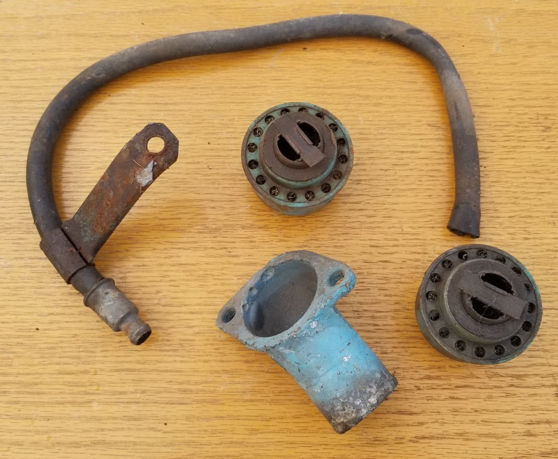 **READ LISTINGS** **NO****RETURNS** **& CALLING US LIARS BY CLAIMING "item not as described"!** **Or you will star in one of our YouTube video's and be** **permanently** **blocked!** **See Our 1%ers section below.** **Parting 1963 Pontiac Grand Prix and Bonneville** **Why buy repop when you can have OEM.** **This Listing is for the...Oil Filler Caps with a PCV & Tube & Bracket, and a water Neck Thremostat Housing Lot. Ok, so these we off the vehicle so we dont know exactly what all of them are for but there was one set of engine parts inside the cabin and there was another set in the trunk like from an extra car. Pretty Solid and Straight. As seen in first 2 pictures... P****erfect for an Original Patina Driver and Weekend Show Car or restore for Show. D****oes not include other parts, but may be available in other listings, so i** **f you need something else let us know.** **Parts are good for a driver weekend show car, with no major dents but expect minor dings/scratches/pitting/scuffs/etc. as with any 50+ year old part.** **Parts may not be perfect but might be nicer than yours.** Hard to find! **Other parts pictured may be available in other listings.** **No other trim or parts included.** **Parts look good to us to restore, but look at pictures,****be your own judge, and do your own fitment research before purchase...no refunds, returns, guarantees, or warrantees expressed or implied.** **Shipping** **Shipping listed on oversize items is just an estimate, good for about half the country, and** **varies** **by location.** **We can get pallets to most places for under 200.** **If its big, no, shipping isn't a buck...you can guess in the 1000 range for complete cars.** **We do ship some things we sell if we have more than one reason to head that direction.** **1%ers Disclaimer** **By purchasing you are agreeing to these terms!** **NO****RETURNS** **& CALLING US LIARS BY CLAIMING "item not as described"!** This means no one percenters. As such, the 99% have the realization that the item they are buying is dirty, used, old and may have idiosyncrasies to match, and they not only appreciate that, but enjoy the thrill of the risk and embrace it all as part of the items individual story, character, and charm! Disgusting! So guess what? All that leads to is a item cost mark up and a lack of transparency in a break down of what you are actually paying for, all because of being duped by the propaganda sound of "free shipping". So don't even attempt in the notes of an offer to say "including shipping" or "combine shipping". So if you want "free shipping" or "combined shipping" do the 3rd grade math...subtract the shipping from the items asking price and offer that instead, then you can see what you are actually asking us to accept in real numbers, because shipping is NEVER FREE.Moreover, since items are not drop ship we have no idea of exact package sizes and weights, we can only estimate a shipping cost, we win some we loose some, when we loose by a few bucks we cover it, when we win by a few bucks we consider it making up for lost ground on the loses, and we consider it as a couple bucks handling. We are not shipping factory packaged blenders here. We have to source boxes and packaging material from several locations, store the boxes, then many times cut boxes to fit in effort to artfully balance protecting your item while keeping the package dimensions inside specified shipping girth, and in cases where it still must go freight, we have to customize/build pallets for your order to meet the various shippers ever changing specifications. So...if you are a one percenter, this is for you! The described item is as pictured, if a picture is worth a thousand words, do not ask us to describe details or what condition the item is in beyond our purposefully short description of what the listing is for. Opinions vary wildly, and we certainly do not have the time to get to know all the idiosyncrasies of your project tastes and goals, in order to explain what is relevant to only you, that is obvious in pictures. You could be a Rat Rodder searching for a rusted out part that is missing on your Shock Rod, or a concourse restorer, or anything in between, we have no way of knowing. Also items are many times pictured on the car, so READ THE SHORT DESCRIPTION of what the listing is for, do not assume because you think its related its included. "But it was in the picture." Yea, we picture other parts of the car so you can see the general condition, so the whole car was in the picture...did ya think the whole vehicle was included? READ THE SHORT DESCRIPTION. Furthermore, titles are just key words for ever changing search algorithms, if you don't understand that, go research it on Google. Many times we add words to titles because we see our customers using parts in an other than factory application, this does not mean we are parts interchange manuals, know you're own vehicle! So to be clear, the parts you are looking at may be between 30 and 80+ years old and may look like the came out of Oscars the Grouches residence, being dusty/dirty, perhaps even having Charlotte's web inside, feasting on dead flies. They probably came from abandoned vehicles in ungodly locations, which means, they were left to the elements and rarely moved, so sun fading, wind chapping and who knows what else may have occurred. When they were moved, they were drug by chains and tow straps, or pushed by tractors(with a tire between them if they were careful) by tired dirty farmers who just wanted to get the vehicle out of their way. So by purchasing, the buyer acknowledges they have received pictures of all items to their satisfaction, have seen they are rusty, dented, dinged, pitted, peeling, fading, cracking, torn, deteriorated, broken, smelly, dirty, bug and web infested used parts off of old vehicles that were abandoned to the elements and may even have the afore mentioned damage/rust/etc. that may not have been visible as with personal in