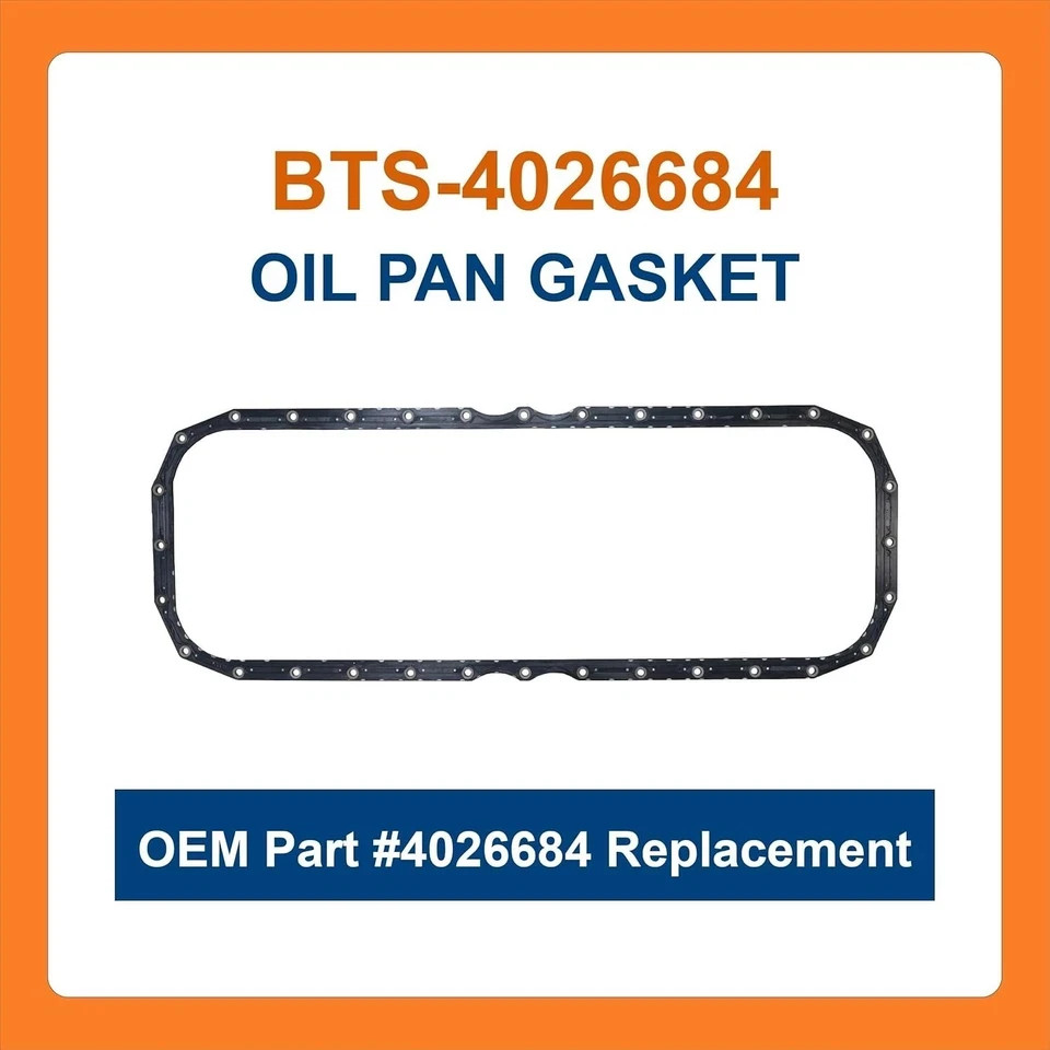**About Item** This **OEM Part #4026684 Replacement Oil Pan Gasket** is a direct-fit solution designed to replace Cummins part number 4026684. Engineered for durability and reliability, it provides a tight seal between the oil pan and engine block, preventing oil leaks and ensuring smooth engine operation. Ideal for maintenance or repair, this gasket is crafted from rubber with a steel core for superior sealing and long-lasting performance. **Features** - **Direct-Fit Replacement** – Replaces Cummins OEM part #4026684. - **Fits ISX15 Engine** – Compatible with Cummins ISX15 heavy-duty diesel engines. - **Durable Construction** – Rubber gasket reinforced with steel for enhanced longevity. - **Reliable Seal** – Prevents oil leaks and maintains optimal engine performance. - **Package Includes** – 1 PC Oil Pan Gasket for installation or replacement. **Part Number** 4026684 **Fitment** Cummins ISX15 Engine