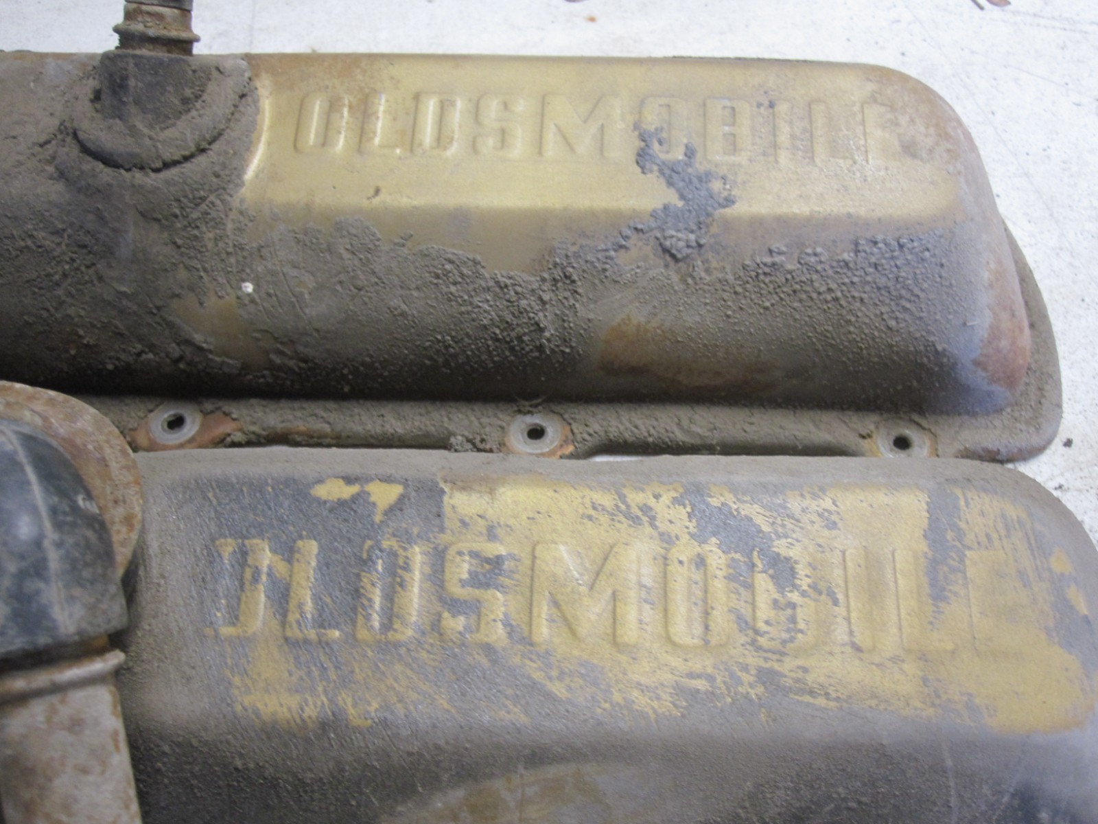 OLDSMOBILE CUTLASS 350 ROCKET GOLD SCRIPTED LETTERED VALVE COVERS OEM