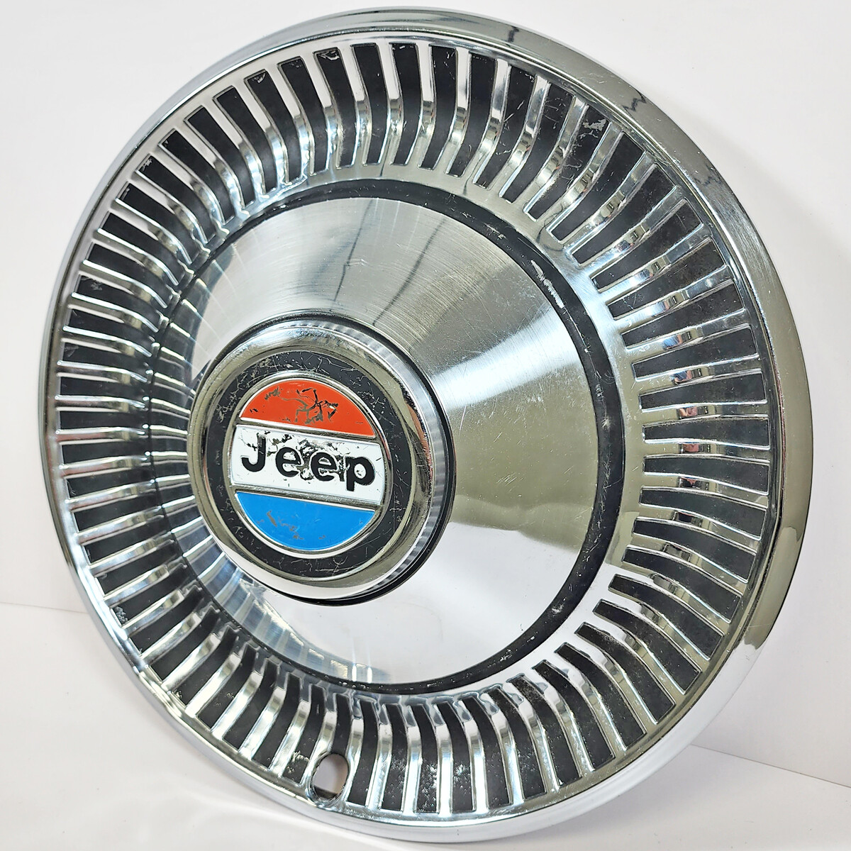 It is used with typical wear and tear. This listing is for one hubcap only. The one shown is the actual one you will get. \\*\\*\\* TERMS: By purchasing this hubcap you are agreeing in advance that you have looked at the pictures and read the entire description plus the "Item Specifics" section. You also agree that if you decide to return it you will be responsible for all shipping costs. \*\*\* - SKU 239 - Size 15" - Quantity (1) Single Hubcap - Application 1976-1979 Jeep CJ / 1976-1983 Jeep Cherokee / 1976-1988 Jeep J-Series Truck / 1976-1983 Jeep Wagoneer - Manufacturer Jeep - Condition Used - Has Typical Wear & Tear - Installation Snap On  Shipping Timing and Pricing  We package your item carefully, to help guarantee that it arrives in perfect condition. Contact us if you have any problems and we will do everything we can to help you. We use FedEX, UPS or USPS for most shipments. Most orders are shipped out of our Illinois warehouse. However, we may occasionally need to ship your item from another location, either due to stocking issues or if we feel it will speed up delivery to your address. This sometimes means changing the shipping method. Your shipping cost will not be affected. Most orders are shipped within 24 hours after payment is made. We ship Monday through Friday. ### SALES TAX Illinois residents are required to pay 10.00% sales tax. ### RETURNS We offer refunds, store credit, or exchange on all items. Our policies are as follows: - The item must be returned in the same condition it was received. - Be sure to purchase full insurance for your item before shipping it back! We may not be able to issue store credit or exchange your item if it is damaged when being shipped back to us. - Buyer is responsible for all shipping costs on returned items. ABOUT US Suburban Wheel Cover has been serving the automotive industry since 1980. We strive to treat our customers the way we would like to be treated. Our goal is to serve our customers with great products at affordable prices. We will do everything we can to meet your needs. Why You Should Buy From Us We are a real, tax-paying business in a commercial location with several employees. This is our job and we care about what we do. We keep real business hours. We post our phone numbers. You can feel very confident that we will complete each and every transaction. We are here and we are ready for you. Thank you for the opportunity! Please contact us if you have any questions: - Hours: We are open M-F from 8:00 AM to 5:00 PM Central Time. * * *  Sell Smarter with Kyozou. Inventory and Ecommerce Management