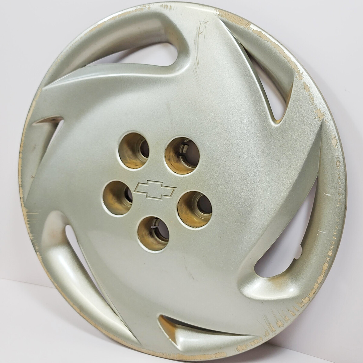 It is inĀ average condition with typical wear & tear / curb rash / scratches etc. The lug nuts are not included. This listing is for one hubcap only and the one shown is the actual one you will get. \\*\\*\\* TERMS: By purchasing this hubcap you are agreeing in advance that you have looked at the picture and read the entire description plus the "Item Specifics" section. You also agree that if you decide to return it you will be responsible for all shipping costs. \*\*\* - SKU T3206 #2 - Size 14" - Quantity (1) Single Hubcap - Application 1992-1994 Chevrolet Cavalier / 1992-1993 Chevrolet Corsica - Finish Silver - Manufacturer Chevrolet - Condition Used Typical Wear & Tear / Curb Rash / Scratches etc. - Installation Bolt On  Shipping Timing and Pricing  We package your item carefully, to help guarantee that it arrives in perfect condition. Contact us if you have any problems and we will do everything we can to help you. We use FedEX, UPS or USPS for most shipments. Most orders are shipped out of our Illinois warehouse. However, we may occasionally need to ship your item from another location, either due to stocking issues or if we feel it will speed up delivery to your address. This sometimes means changing the shipping method. Your shipping cost will not be affected. Most orders are shipped within 24 hours after payment is made. We ship Monday through Friday. ### SALES TAX Illinois residents are required to pay 10.00% sales tax. ### RETURNS We offer refunds, store credit, or exchange on all items. Our policies are as follows: - The item must be returned in the same condition it was received. - Be sure to purchase full insurance for your item before shipping it back! We may not be able to issue store credit or exchange your item if it is damaged when being shipped back to us. - Buyer is responsible for all shipping costs on returned items. ABOUT US Suburban Wheel Cover has been serving the automotive industry since 1980. We strive to treat our customers the way we would like to be treated. Our goal is to serve our customers with great products at affordable prices. We will do everything we can to meet your needs. Why You Should Buy From Us We are a real, tax-paying business in a commercial location with several employees. This is our job and we care about what we do. We keep real business hours. We post our phone numbers. You can feel very confident that we will complete each and every transaction. We are here and we are ready for you. Thank you for the opportunity! Please contact us if you have any questions: - Hours: We are open M-F from 8:00 AM to 5:00 PM Central Time. * * *  Sell Smarter with Kyozou. Inventory and Ecommerce Management