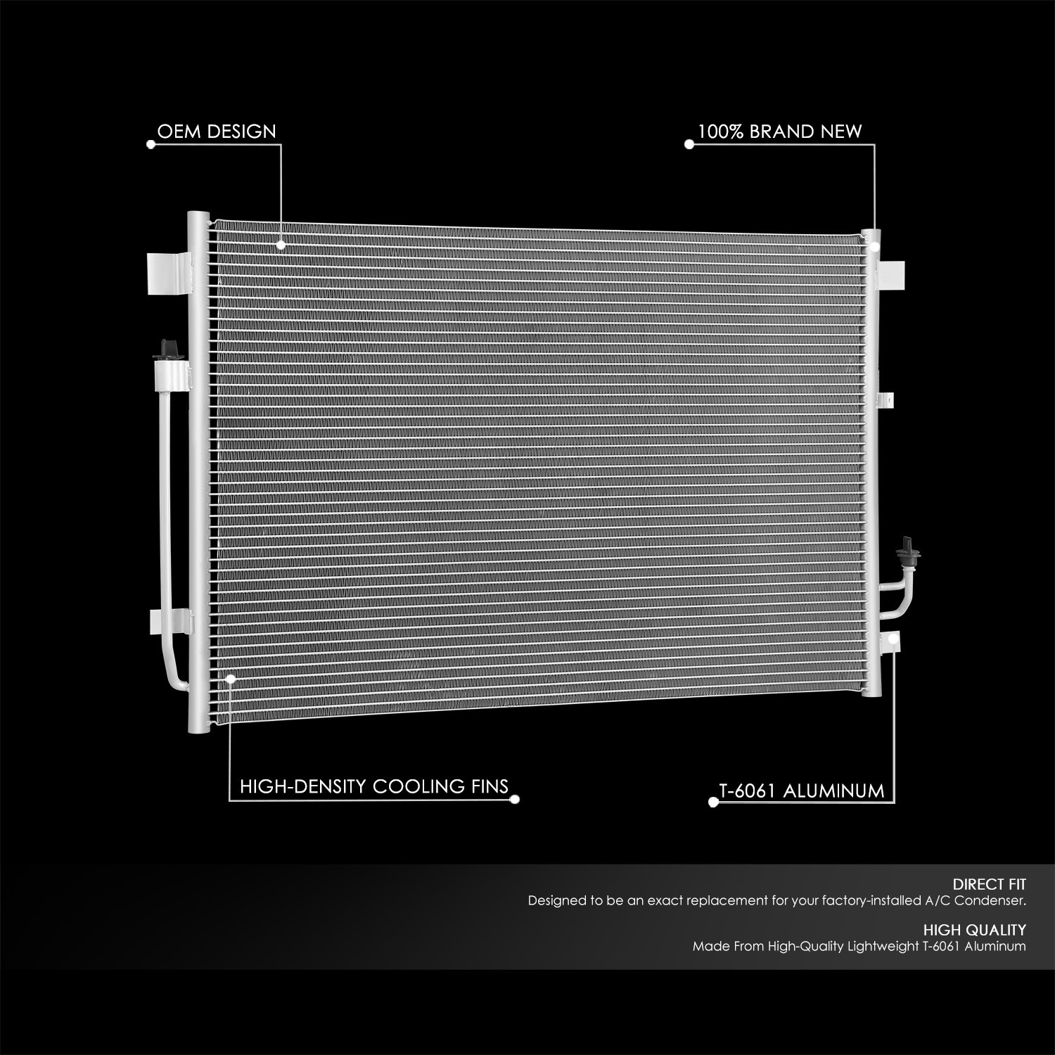 Description If your A/C Condenser is faulty, it may result in refrigerant leaks, punctures, corrosion, or damage from a collision. If you're experiencing warm air blowing from the air conditioning in your vehicle,try our direct replacement parts. Save your moeny now and enjoy a refreshed front-end appearance! **INCLUDE:** 1 X A/C Condenser (Front) **Item Condition:** Open Box Item was previously returned and inspected Product is complete, fully functional, and in good condition Product ships in its original packaging **FEATURES:** OEM Design Direct Replacement Made From High-Quality Lightweight T-6061 Aluminum Precise Fitment/ OE Replacement Effortless & Easy Installation **NOTES:** **Compatible with:** NISSAN MURANO 2009-2014 NISSAN QUEST 2011-2017 These Parts Do NOT Have a Factory Warranty Professional Installation is Highly Recommended Installation Instruction is NOT Included WE HIGHLY RECOMMEND PROFESSIONAL INSTALLATION! Shipping Information