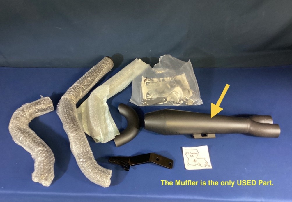 **NEW/USED open box Two Brothers Racing 2 in 1 Turnout Full Exhaust, BLK. The Muffler itself is a USED item. All other parts are NEW. Please look at the pictures.** **P/N: 005-5120199-BSG** **Fits: 2018 Softail Sport Glide** NEW IN ORIGINAL PACKAGING, UNUSED, **Since we are not a franchise dealer, we sell all of our parts as used, even if they are new in the box. Please ask questions, we are happy to answer them.** CHECK YOUR DEALER FOR MORE FITMENT INFORMATION. We are a family that loves to ride and we ride just about everything. We come across deals on inventory of all sorts and we pass those savings on to you. We strive very hard to make every customer happy, provide accurate descriptions with plenty of pictures and will do our best to resolve an issue if one should arise. We are NOT a Harley, Honda, Yamaha or any other franchise dealer. It is very expensive to list and ship items. We kindly ask that you follow these suggestions before buying from us. If you are not sure if it will fit your ride, DO NOT BUY IT! If you are not sure if you will like the color, DO NOT BUY IT! If you have not looked at the pictures or completely read the description, DO NOT BUY IT! If you are not sure that it is what you need, DO NOT BUY IT. If you know what you want/need, have done your due diligence, asked the proper questions, and are looking for a great deal on this, BUY IT! Ask questions prior to purchasing as all sales are final. We will assist in any way that we can and answer any questions that you may have. WE DO NOT ACCEPT RETURNS UNLESS WE HAVE MADE A MISTAKE ON OUR END. We sell new/used/OBS/ items. We describe them as accurately as possible. If you have a problem with any item, shipping damage, does not work as it should or something else, CONTACT US! All orders are shipped ground economy. If you would like your order expedited, please contact us prior to purchasing so we can add additional shipping fees. We ship within 48 hours, on BUSINESS days, often same day if possible. Thank you for looking and God bless. D5 Montgomery