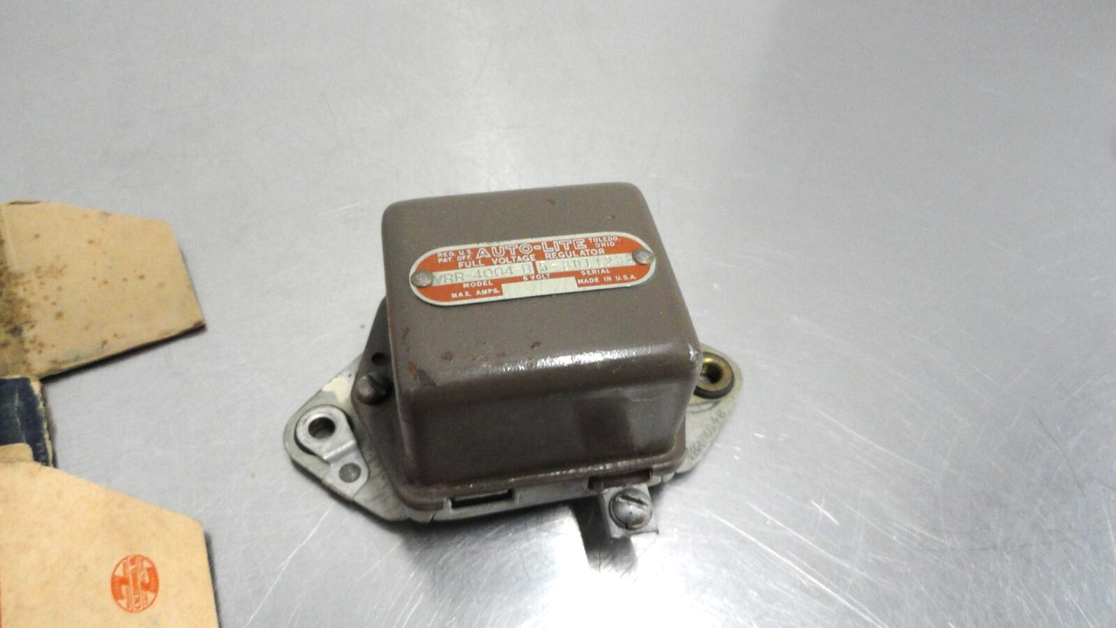 - Auto-Lite Voltage Regulator, stamped VRR-4004-B 5-B011256 6 Volt, selling as pictured, please message with any questions, Thanks - These items listed are from an older automotive shop & dealerships that closed a few years ago. We are listing these items by the part numbers on the boxes, please see pictures to verify the items are boxed correctly and also please verify your application is correct before purchasing. Please email if you have any questions on these, Thanks - (Please Note: if packages are sealed we sometimes leave them that way to take the pictures, if you still would need a close-up let us know and we will open them up to get a better picture, Thanks)