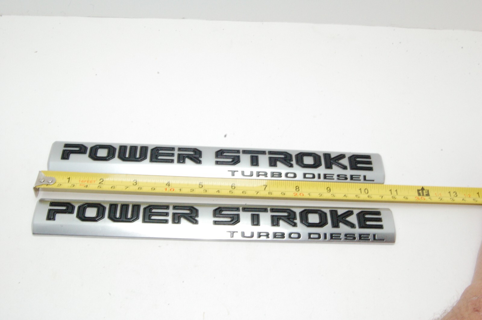 Here is a good PAIR 2017-2022 FORD F250 F350 POWERSTROKE Turbo Diesel Door Emblem HC3B-16703-BB. Emblems have a nice finish all over. There are surface scratches and or dirt all over from usage. There is sticker adhesive on backside that needs to be removed prior to installation.