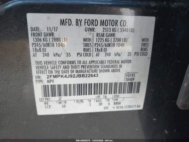 - VIN #: 2FMPK4J92JBB22643