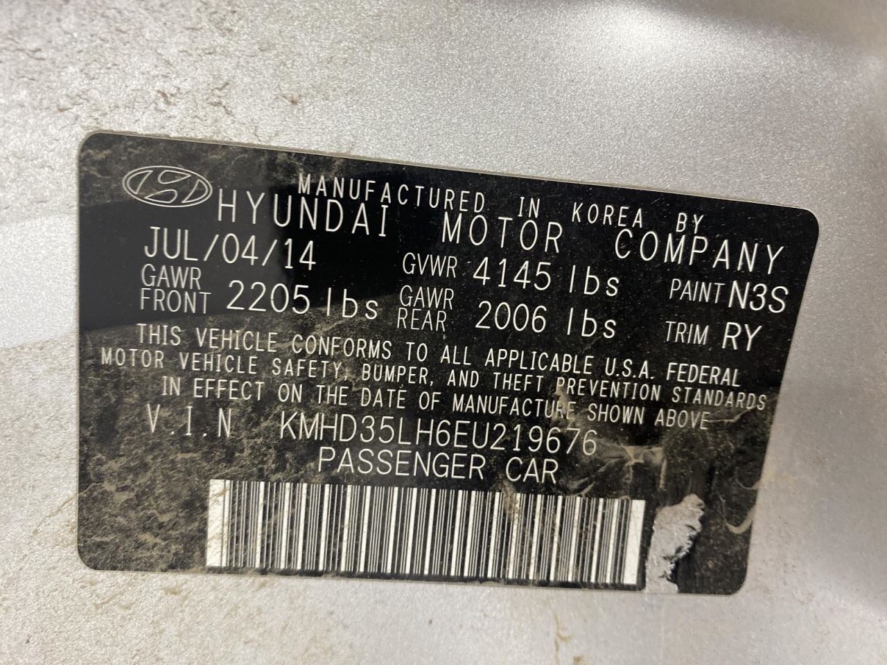 - VIN #: KMHD35LH6EU219676