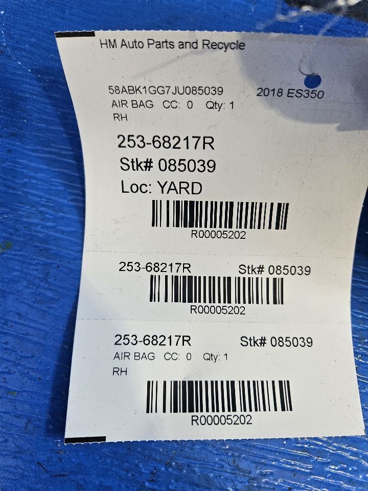 Passenger Air Bag North America Built Front Dash Fits 16-18 LEXUS ES350 5202