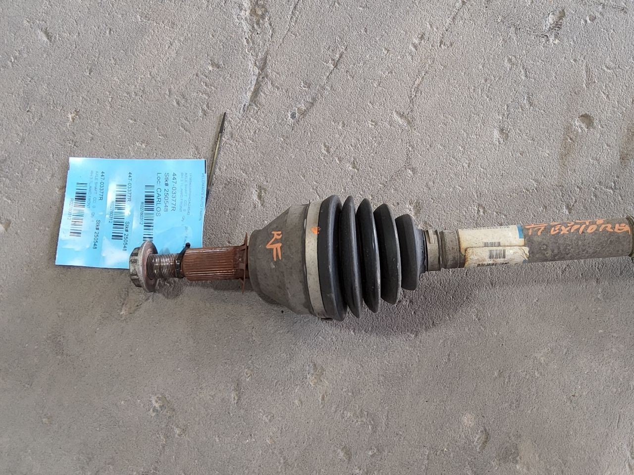 # Passenger Axle Shaft Front Axle 3.5L AWD Fits 16-19 EXPLORER 2780312 ## Description \*\*\*\*NOTES\*\*\*\* THIS LISTING IS FOR THE RIGHT/PASSENGER'S SIDE FRONT AXLE SHAFT FROM THE PICTURED VEHICLE. PLEASE ENSURE VEHICLE COMPATIBILITY PRIOR TO PURCHASE. OUTER JACKSHAFT NORMALLY INCLUDED UNLESS NOTED OTHERWISE IN FULL DESCRIPTION UNDER "PART DETAILS." MILEAGE CAN BE FOUND IN FULL AD. ALL PARTS INSPECTED BEFORE SHIPMENT TO ENSURE ACCURACY, QUALITY, AND CUSTOMER SATISFACTION. ALL PARTS COME WITH A 90 DAY \*PARTS ONLY\* WARRANTY STARTING THE DAY YOU RECEIVE IT. THANK YOU. Knowing how these codes are used will help you understand whether the part meets your expectations before you buy it and what you can expect from the part when you receive it. A Grade\- The highest quality part. It is of low miles and/or exceptional condition for its age.B Grade\- The second level quality part. It is of average miles and normal condition for its age. Minor blemishes or imperfections expected.C Grade\- The third level quality part. It has high miles and/or moderate blemishes/imperfections. No Grade \- A part that has not yet been graded or grade is not applicable. We will respond to you within 48 hours during regular business hours and do our best to help. We encourage you to contact us with any questions or concerns! We want to be sure you are confident and satisfied with your purchase. If you are not pleased with an item upon arrival please contact us before opening a claim or leaving a negative review so we can quickly resolve the issue for you! Shipping We ship all smaller parts free of charge to US addresses within the 48 states via FedEx ground. Engines, transmissions, carriers, transfer cases, doors, and other body parts are shipped using Flat Rate Freight. For frieght items, delivery to residential or business is available, and the delivery truck will come equipped with a lift-gate service if needed at no additional charge. No Alaska, Hawaii, Puerto Rico, APO, FPO or PO Box please. International shipping is available only on select items and to certain areas. See shipping details above next to the shipping price. Pick up at our facilities is available. Items will be shipped within 1-2 business days of purchase. Please allow up to 5 business days for delivery, although most orders arrive much quicker. Most areas in the US are within 5 days. If an item arrives damaged, please get in touch as soon as possible. We may have a replacement part and can ship it out immediately. Due to high demand, short supply or human error, occasionally we may be out of stock on an item. If this happens, we will contact you immediately and offer you the option of waiting for the part to come in stock, or a full refund. **An additional charge may be applied for shipments to West Coast states.** Warranty/Guarantee All parts come with a 90-day money back guarantee unless otherwise stated. The 90 day period starts when you take possession of the part. No labor warranty is provided. In the event a part sold with a warranty fails to operate within the warranty period we will replace the part(s) with a functionally equivalent part or refund the part purchase price, at our option. We must recieve the part back at our store to issue the refund. Return shipping charges are not refunded unless the item was damaged during shipment or we shipped the wrong part. If you ordered by mistake or changed your mind simply ship the part back and we will give you a refund less the shipping. Ship all returns to Veldman's Auto Parts, 25926 State Road 2, South Bend, IN 46619 along with a copy of the original receipt if possible. **Returns may be subject to a restocking fee up to 25%.** ## **About Us** Veldman's Auto Parts is an automotive recycler based out of South Bend, Indiana. Family owned and operated since 1982, we specialize in late model used auto and truck parts. We house over 3000 cars on 22 acres and have over 200,000 parts in inventory. At Veldman's Auto Parts we strive to ensure our customers are completely satisfied through competitive pricing, exceptional service, and guaranteed reliability. Our superior inventory, attention to detail, and high standards for customer satisfaction have made Veldman's a leader in the automotive recycling industry in the Midwest. Come see first-hand why we have so many repeat customers!