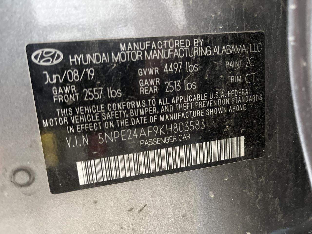 - VIN #: 5NPE24AF9KH803583