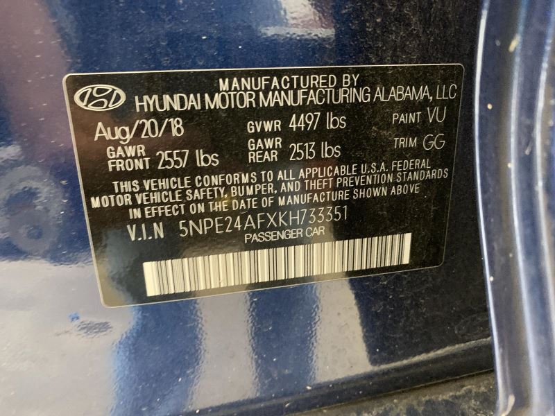 - VIN #: 5NPE24AFXKH733351