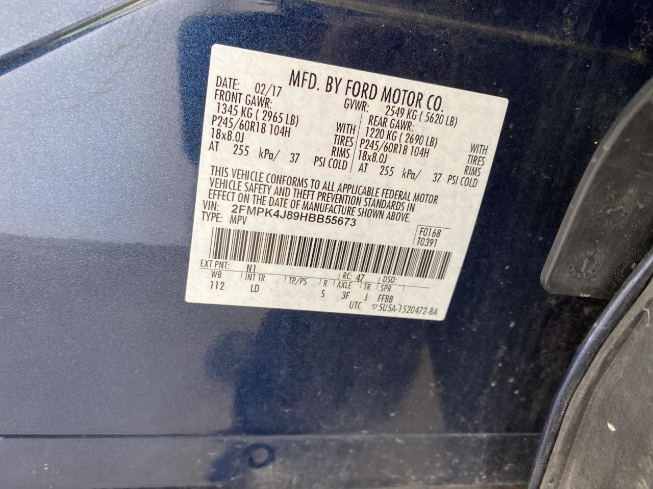 - VIN #: 2FMPK4J89HBB55673