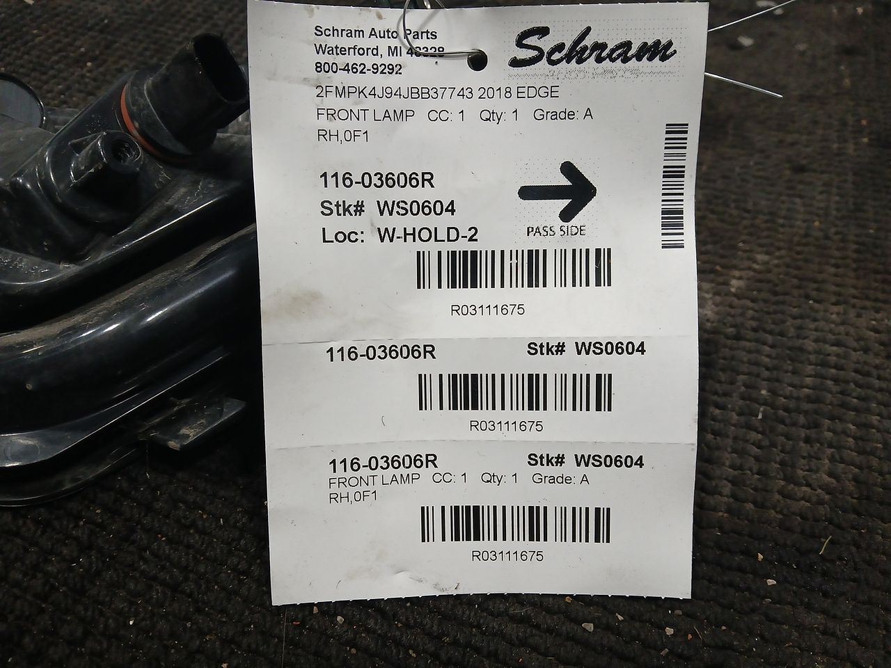 1923   Description RH,0F1 Mileage: 99000 This item will fit the following vehicles/applications: EDGE 15-18 daytime running lamps, (bumper mounted), R. **Illuminate the Way with Reliable Fog Light and/or Running Light!** **Schram Auto and Truck Parts - Fog Lights and Running Lights** At Schram Auto and Truck Parts, Inc., we recognize the significance of clear visibility in various driving conditions. Our **Fog Light / Running Light** not only enhances your safety, but it also adds a touch of style to your vehicle. We take pride in offering tested and inspected fog lamps, all in perfect working condition. As a trusted automotive recycling company since 1923, we provide quality original equipment fog lights that continue to serve an essential role in helping others repair, restore, and enhance their vehicles. Rest assured that all of our fog lamps have undergone testing and inspection to ensure their flawless performance. Please note that the fog lamps are sold without grilles or bezels, unless stated otherwise. Wear and scratches from normal use are expected on this item. To ensure the perfect fit, refer to the 'Fitment' section of this listing for precise compatibility. We strongly recommend confirming compatibility before making a purchase to ensure a seamless fit. **Your Questions Are Important** If you have any questions or need further information, please ask us before making a purchase! We're here to provide the details you need to make an informed decision. Illuminate the road ahead with reliable Fog and Running Lights from Schram Auto and Truck Parts, Inc. Join us in our commitment to providing top-notch solutions while enhancing your vehicle's safety and style. Vehicle 2018 EDGE Mileage 99000 Part Grade A What's this?