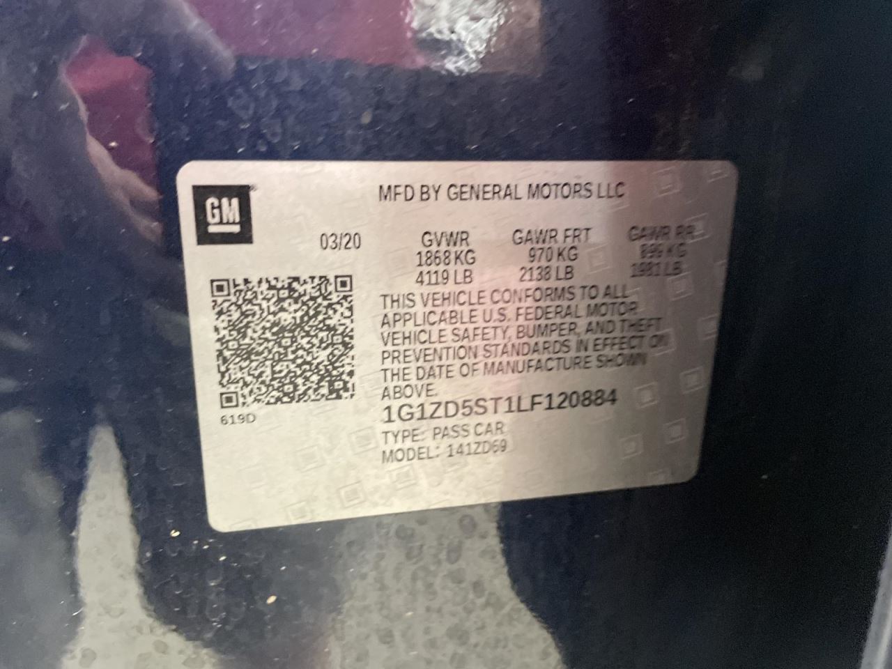 - VIN #: 1G1ZD5ST1LF120884