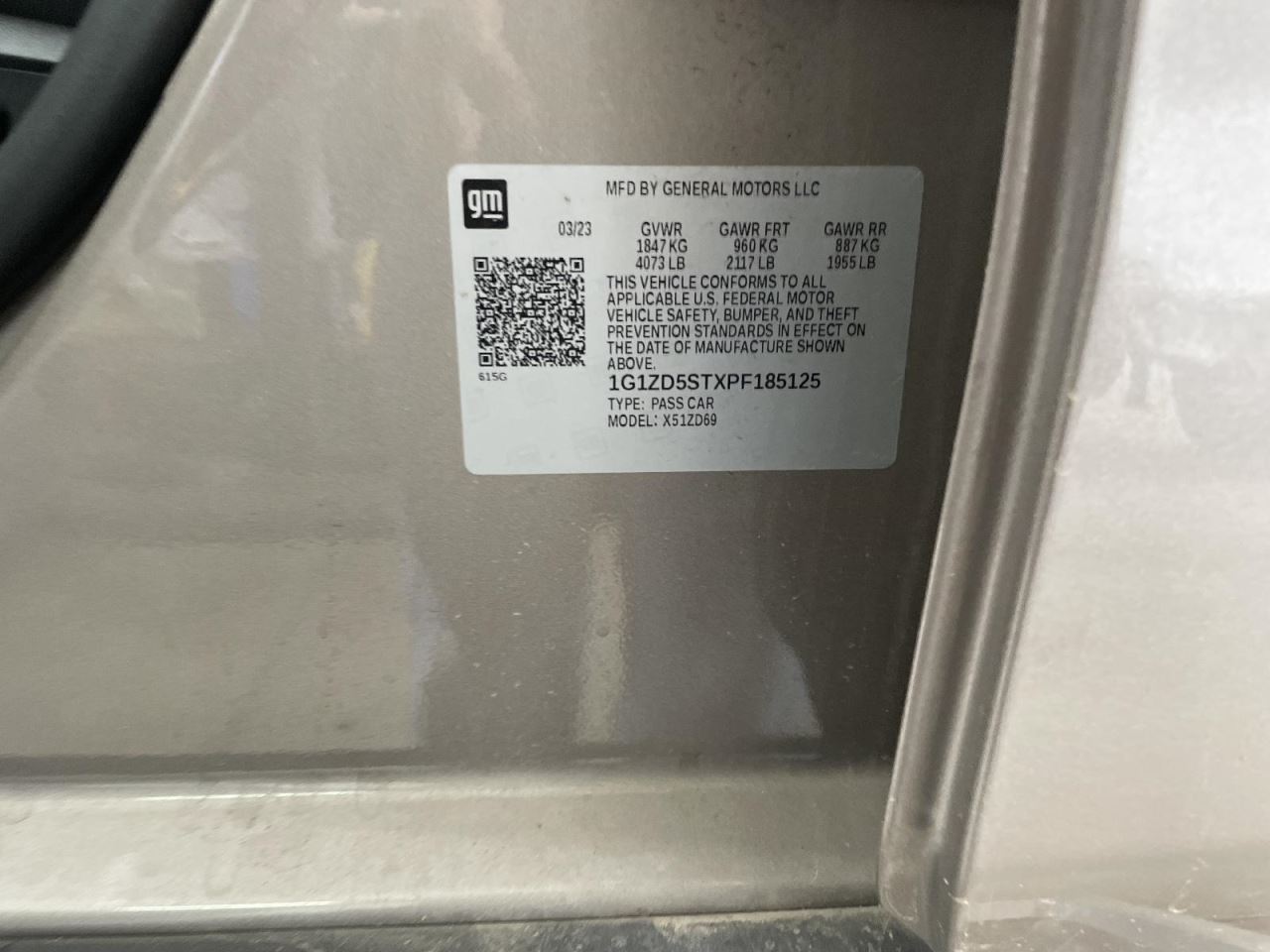 - VIN #: 1G1ZD5STXPF185125