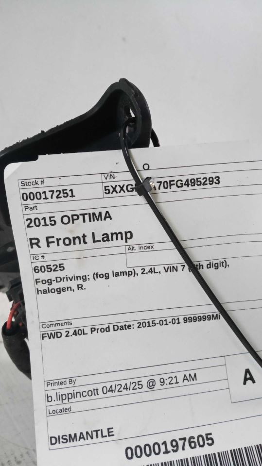Every time. Passenger Corner/Park Light Fog-driving Fog Lamp VIN 6 Fits 14-15 OPTIMA 442077 -   -   -   -   -   -   -   -   -   -   PayPal, Apple Pay, Google Pay, and all major credit/debit cards are accepted. _I certify this airbag is not subject to recall and will be shipped in accordance with hazmat shipping requirements._ **LTL Freight Delivery** (Shipping cost included in price listed unless otherwise stated) - **Commercial Business Address:** - A valid business name and phone number are required. Failure to provide these details will delay your order. - **Residential Address:** - Curbside delivery only. - An adult over 18 must be present for delivery. - A daytime phone number is required to schedule the delivery. - Ensure your voicemail box is set up to receive messages. - **Small Item Delivery via FedEx:** - Small items will be shipped via FedEx Home Delivery Service. - Once a tracking number is created, delivery typically takes 3-5 business days. - **Shipping Restrictions:** - Cannot ship to APO/FPO military addresses or P.O. Boxes. - **Customer Pickup (Free):** - Customers may pick up this item at the specified location in this listing. - Sales tax may apply. - At checkout, provide a daytime phone number. - Present our authorized Proof of Purchase email at the time of pickup. This Proof of Purchase will be emailed within 2 business days of full payment. Items will not be released without it. - Items picked up at the local warehouse are not prepared for shipment and do not include packaging. If packaging is needed, please contact us to arrange this service for an additional handling/packaging charge based on the item's size and weight. - **No Weekend Pickups.** ### Returns Policy: - Customers must initiate a return within 30 days of receiving the item. - The item must be returned in its original packaging and condition. - The buyer is responsible for return shipping costs. - Refunds will be processed promptly upon receipt and inspection of the returned item, excluding any incurred shipping charges. ### Money Back Guarantee: - A refund will be issued upon the safe return of the item, excluding labor costs. ### Warranty Information: - Please review the listing for specific warranty details. - Some items include a warranty clearly stated in the listing. - Items marked "Sold AS-IS" are final sale with no warranty. ### Parts Covered by Warranty: - We offer a full refund for parts that fail due to defective materials or incorrect fitment (provided correct vehicle details were provided). - Labor costs are not refundable. - For assistance, please provide a digital picture and your vehicle's VIN number. ### Items NOT Covered by Warranty: - Non-defective parts returned are subject to a 20% restocking fee. - Shipping costs are non-refundable, and the buyer covers return shipping. ### Exclusions: - Items such as airbags, seat belts, and tires are sold "AS IS." ### Freight Forwarders: - Using freight forwarders voids all warranties. - We ship only to the provided address within the US. - Once items leave the country, returns, warranties, or refunds are not applicable. - Additional shipping costs due to forwarding are non-refundable. ### My Auto Store (MAS) Terms of Sale and Limited Warranty Agreement #### Mechanical Warranty Duration and Terms The duration of the warranty period is indicated on the front of the Invoice. If no warranty information is listed on the front of the invoice the following warranty period applies. Repair ShopsDirect to ConsumerParts YardsExports6 months part only warranty6 months part only warranty90 day part only warrantyNo warranty All warranties begin at the date of purchase (invoice date) not at the date of installation. Warranties are non-transferable and only applies to original purchaser. At its option, MAS will repair, replace or refund the purchase price of the part in the event of a failure. MAS reserves the right to replace failed parts with equal to or greater than original mileage parts. All warranty claims must accompany original invoice. #### Mechanical Warranty Disclaimer and Validation - Engines: are guaranteed against knocking and excessive smoking. Your warranty is voided if engines heat tab is melted or removed. Engine warranties are limited to defects in the block, heads, pistons, crankshafts, camshafts, rockers, and oil pumps. All other parts included are considered accessories or extra parts. While engines may come with additional accessories, these are not covered under any warranty and are included to aid in the convenience of installation. - Transmissions: are warrantied to be in good working order against any slippage or shifting failures. Any accessories such as but not limited to: modulators, governors, electrical controls, linkage, mounts, seals, gaskets or fluids are not covered under warranty. - Differentials: All internal lubricated parts within the drive axle housing are guaranteed in good working condition at the time of purchase. In order for the warranty to be valid, there are standard “Recommended Installation/Replacement Procedures” for Engines, Transmissions, Transfer Cases and Differentials. Failure to provide proof any of these steps were not taken by will void the warranty. Upon installation buyer agrees to follow vehicles regular maintenance as recommended by manufacturer and may be required to provide proof of such activities in the event of a warranty claim. #### RECOMMENDED INSTALLATION/REPLACEMENT PROCEDURES ENGINES - Scan, record and clear all codes before removing original unit - Drain and replace engine oils to manufacture suggested levels - Replace oil, air and fuel filters - Replace valve cover gaskets - Replace oil pan gasket and rear main seal - If needed, replace timing gears, chains or belts & gaskets - Replace thermostat & gasket - Flush cooling system & re-fill to proper level - Install new spark plugs & wires - Install new belts and hoses TRANSMISSIONS/TRANSFER CASES - Scan, record and clear all codes bef