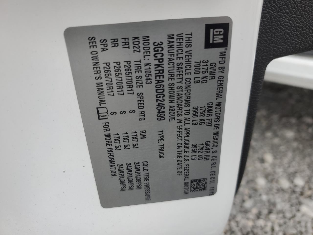 - VIN #: 3GCPKREA6DG246499