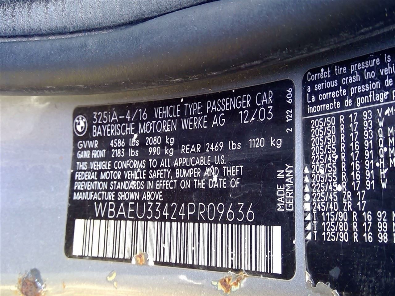 - VIN #: WBAEU33424PR09636