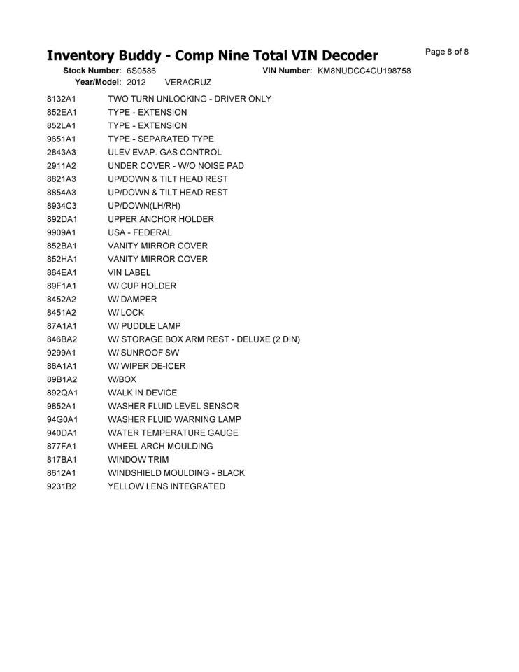 - VIN #: KM8NUDCC4CU198758