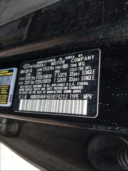 - VIN #: KM8SR4HF6EU074212