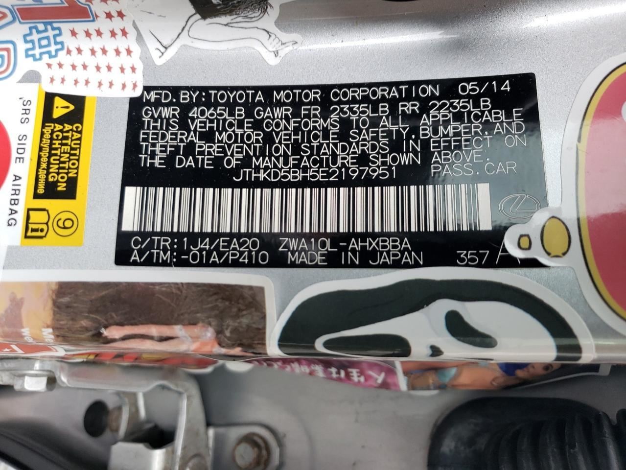 - VIN #: JTHKD5BH5E2197951