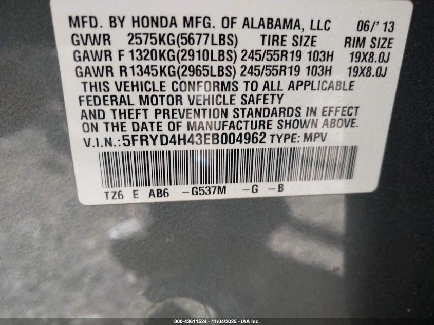 - VIN #: 5FRYD4H43EB004962