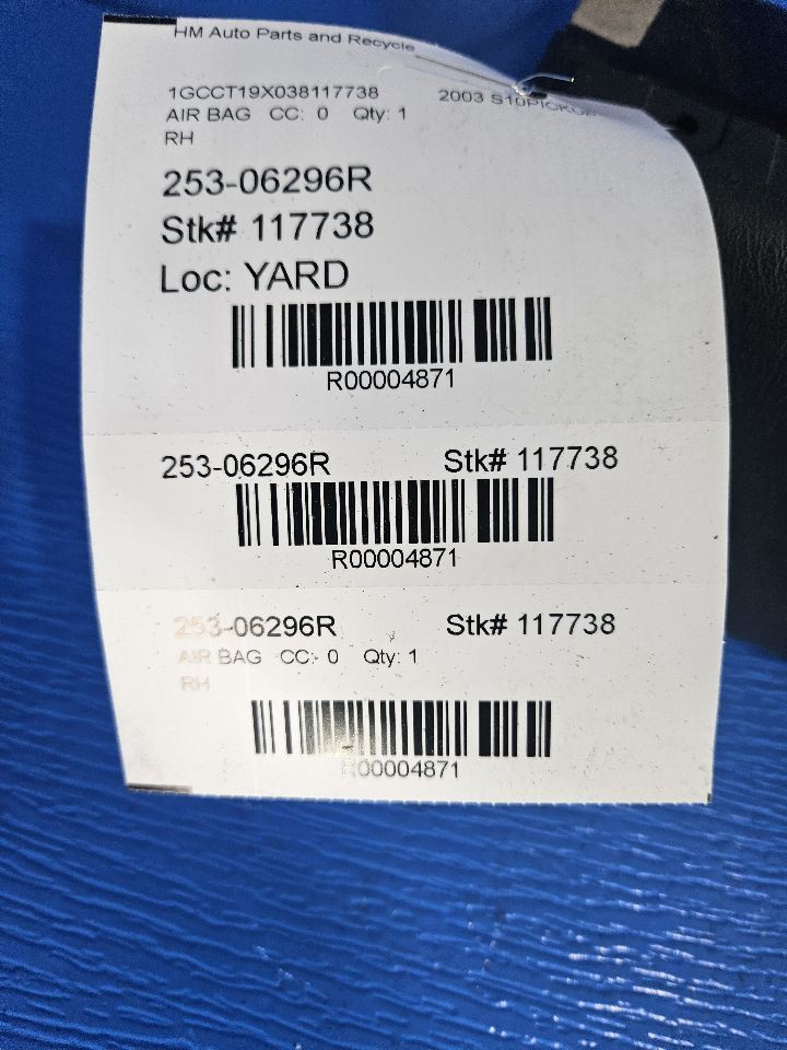 Passenger Right Air Bag Passenger Fits 00-05 BLAZER S10/JIMMY S15 4871