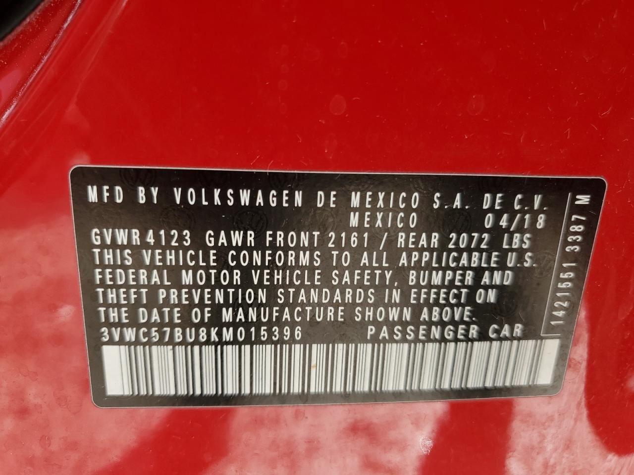 - VIN #: 3VWC57BU8KM015396