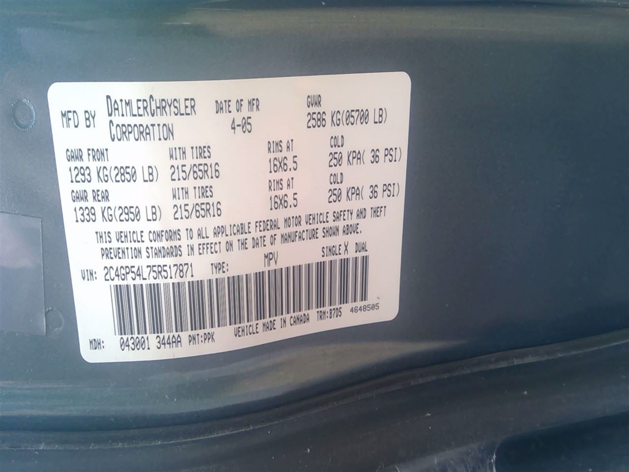 - VIN #: 2C4GP54L75R517871