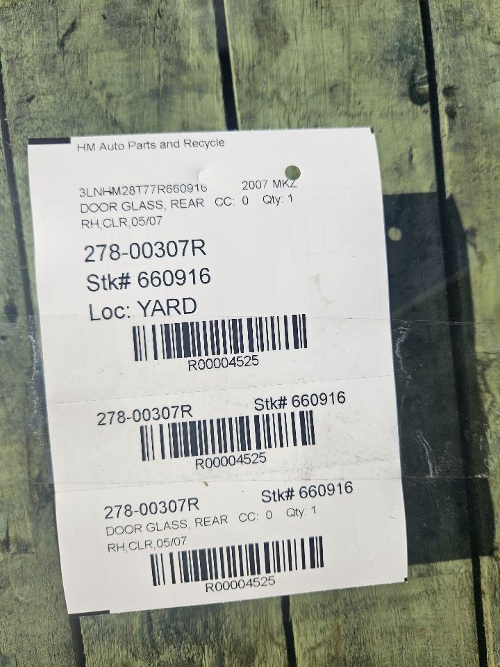 Passenger Right Rear Door Glass Tinted Fits 06-12 FUSION 4525