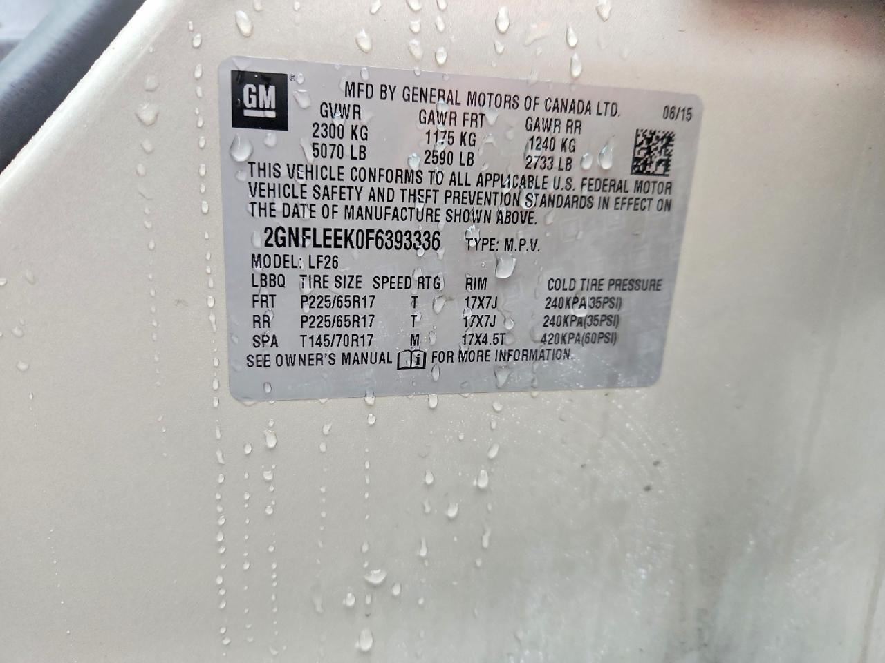- VIN #: 2GNFLEEK0F6393336