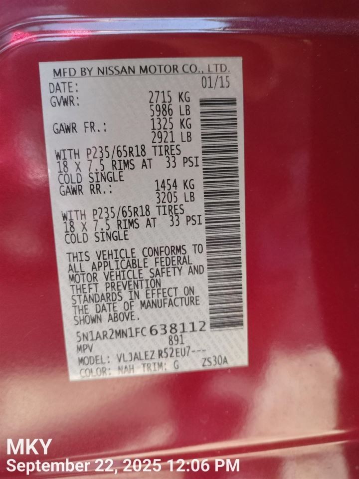 RIGHT BLK THIRD SEAT SW/VAN OEM 2015 NISSAN PATHFINDR