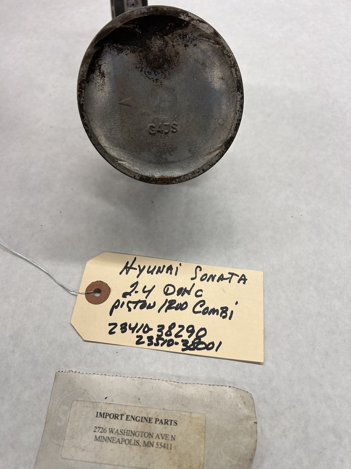 PISTON/CON ROD COMBI \*USED\* FITS HYUNDAI SONATA 2351cc G4JS DOHC 1999-2005 23410-38290 USED ONE PISTON AND ONE CON ROD USED WITH OUT RINGS ALSO FITS HYUNDAI SANTA FE 2351cc G4JS DOHC 2001-2005 CON ROD # 23510-38001 USED ALSO FITS KIA OPTIMA 2351cc G4JS DOHC 2001-2006