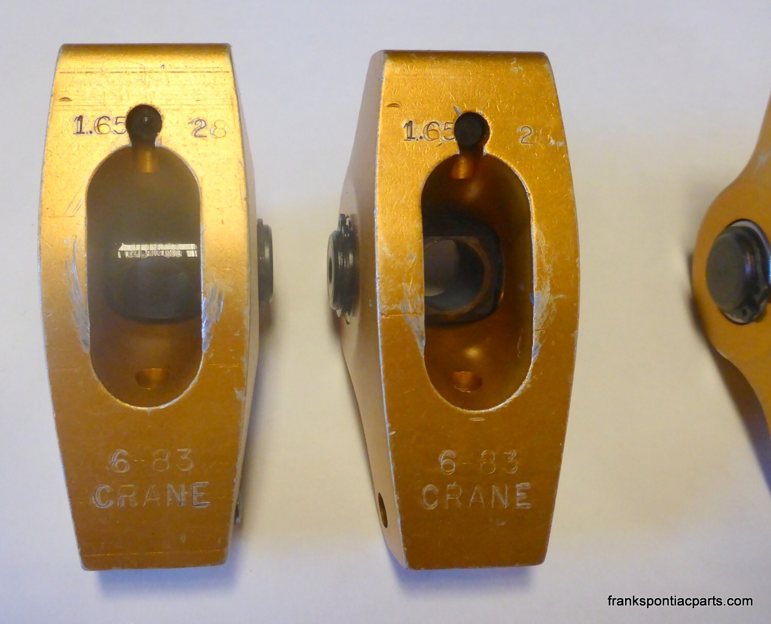 **Crane Racing Pontiac V8 Roller Rockers** This listing is for one set of vintage used Crane Pacing roller rockers in great condition. They fit all Pontiac V8 engines from 1964-79 when equipped with 7/16 studs. They are marked 1.65 28 6.83 on each rocker Thank you! When ordering from multiple listings, use "Add to Cart" before final check-out.