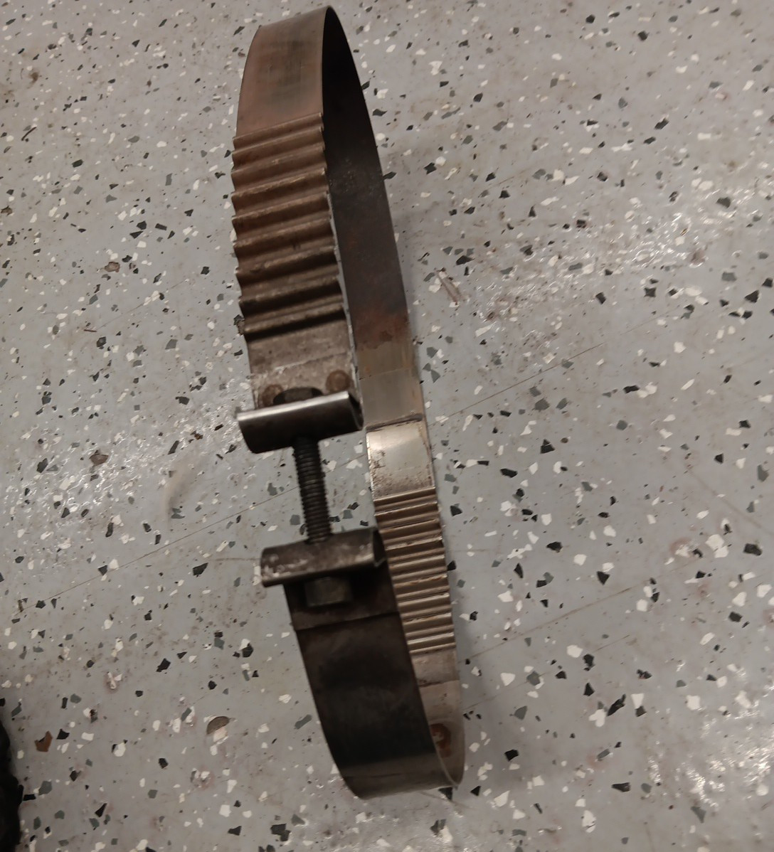 The Porsche 911 993 Muffler Bracket Strap is a genuine OEM part made of stainless steel, featuring a chrome like finish. With the OE/OEM part number 99311111907. This strap is used but hardware is in good shape