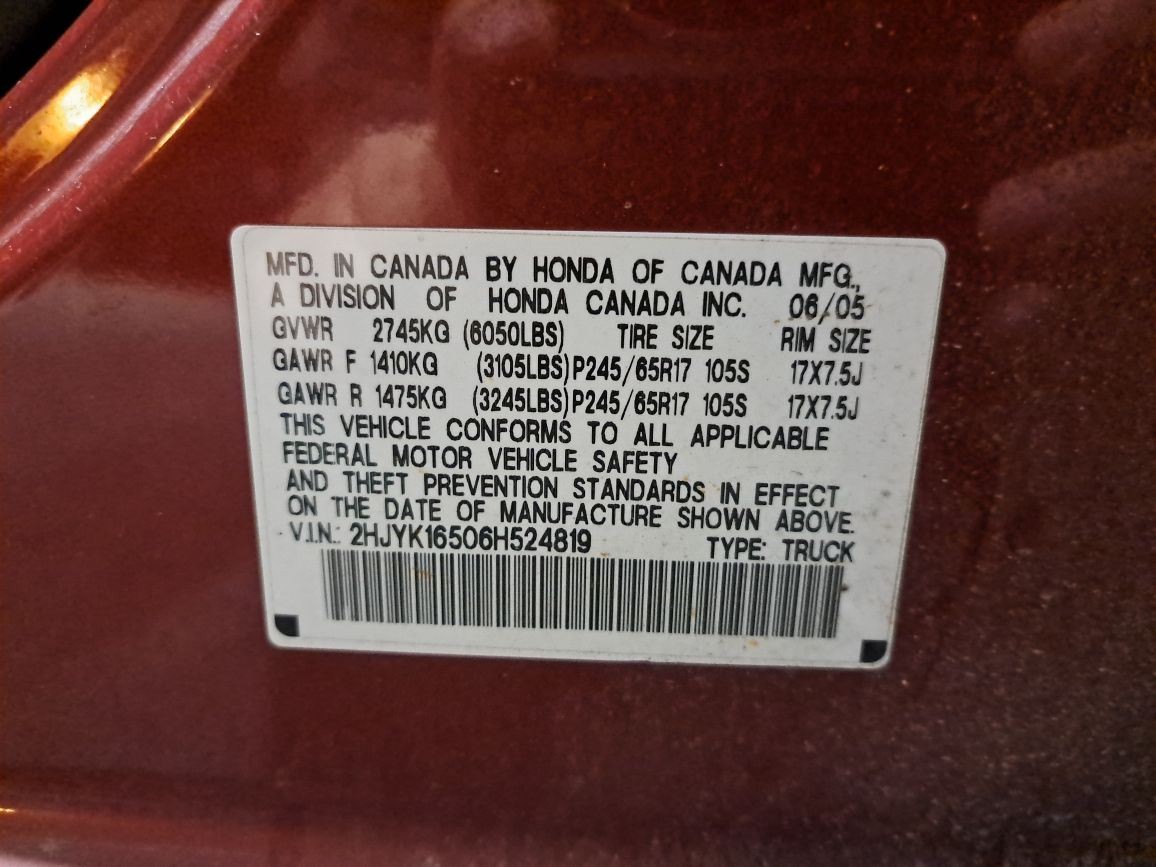 - VIN #: 2HJYK16506H524819