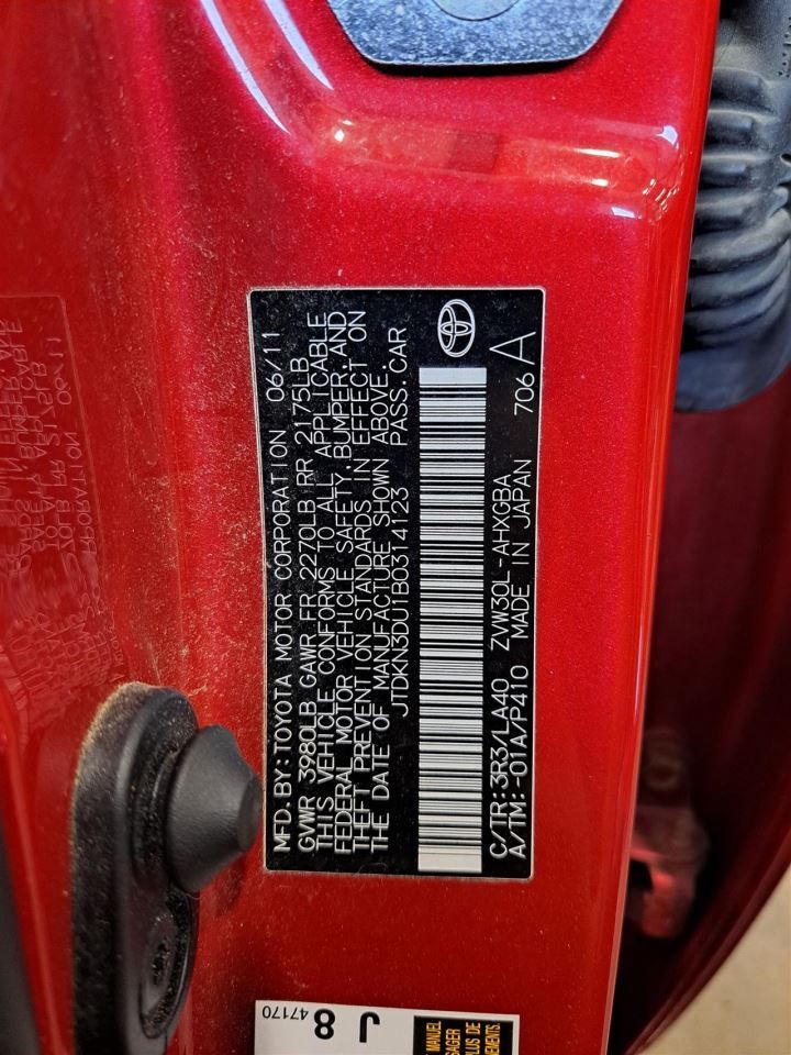 - VIN #: JTDKN3DU1B0314123