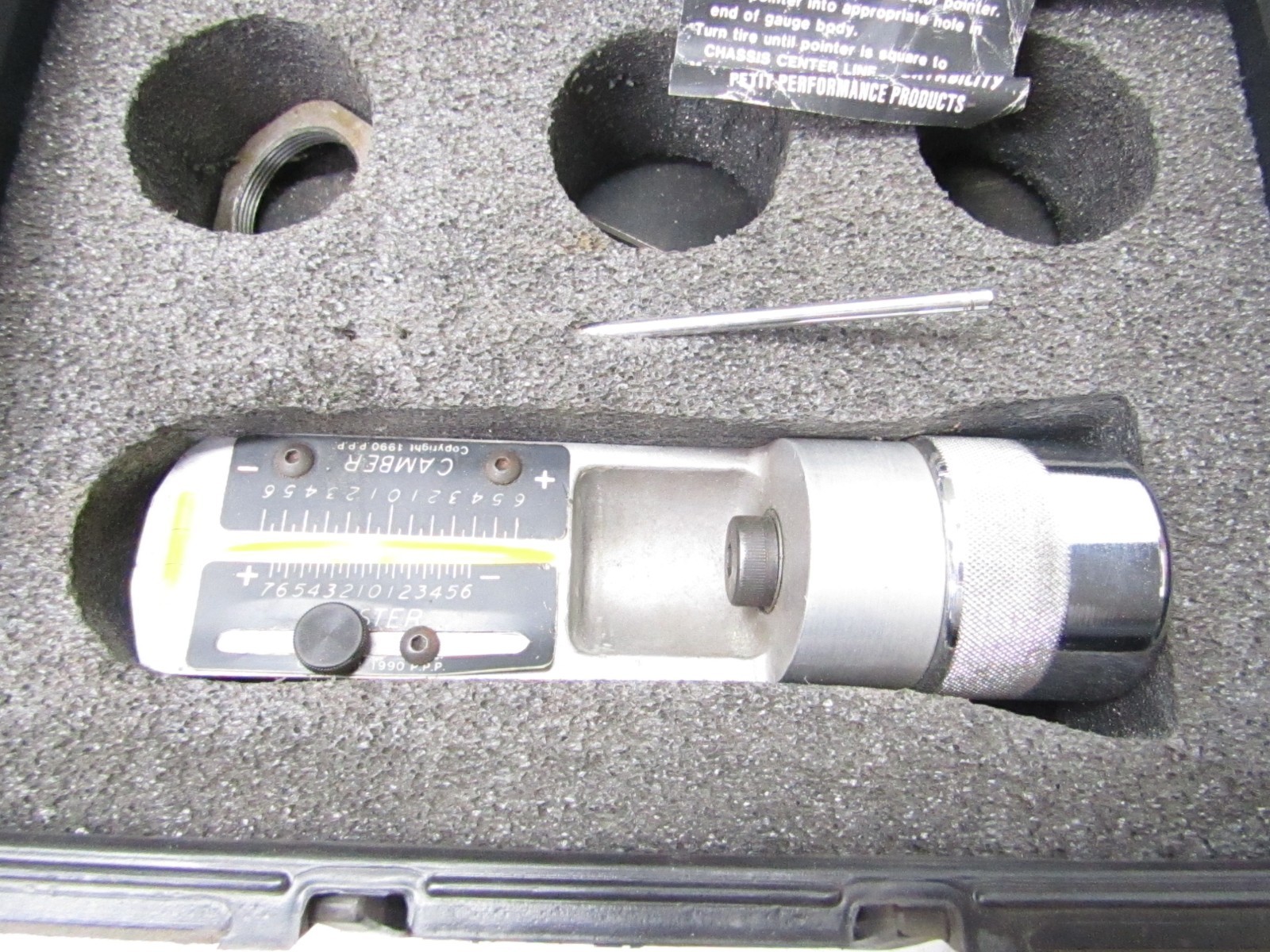 Here is a used Petit Performance Products caster camber gauge with case. It is for the wide five spindles. We do combine shipping on multiple items.