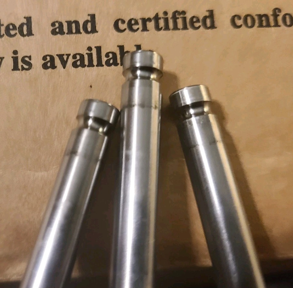 These are set of eight (8) 7mm. intake valves made from titanium with a selling code of CA 4. The valves measure 7mm. at stem thickness, with a head size measuring close to 2.180". The overall length is approximately 5.680". The valves came from old stock dating back to 2002. The valve face has a slight concave surface and were used for approximately less than 248 miles. PLEASE NOTE THE FOLLOWING: THERE IS NO BOX FOR THESE VALVES AND THEREFORE THEY WILL BE INDIVIDUALLY WRAPPED , BOXED AND SHIPPED. The valves pictured are the one's you will receive. The bottom surface of the valves are very slightly concave. We appreciate your interest in our store and hope we can do business together. Thanks for looking! Please add us to your favorites. These are older vintage valves.