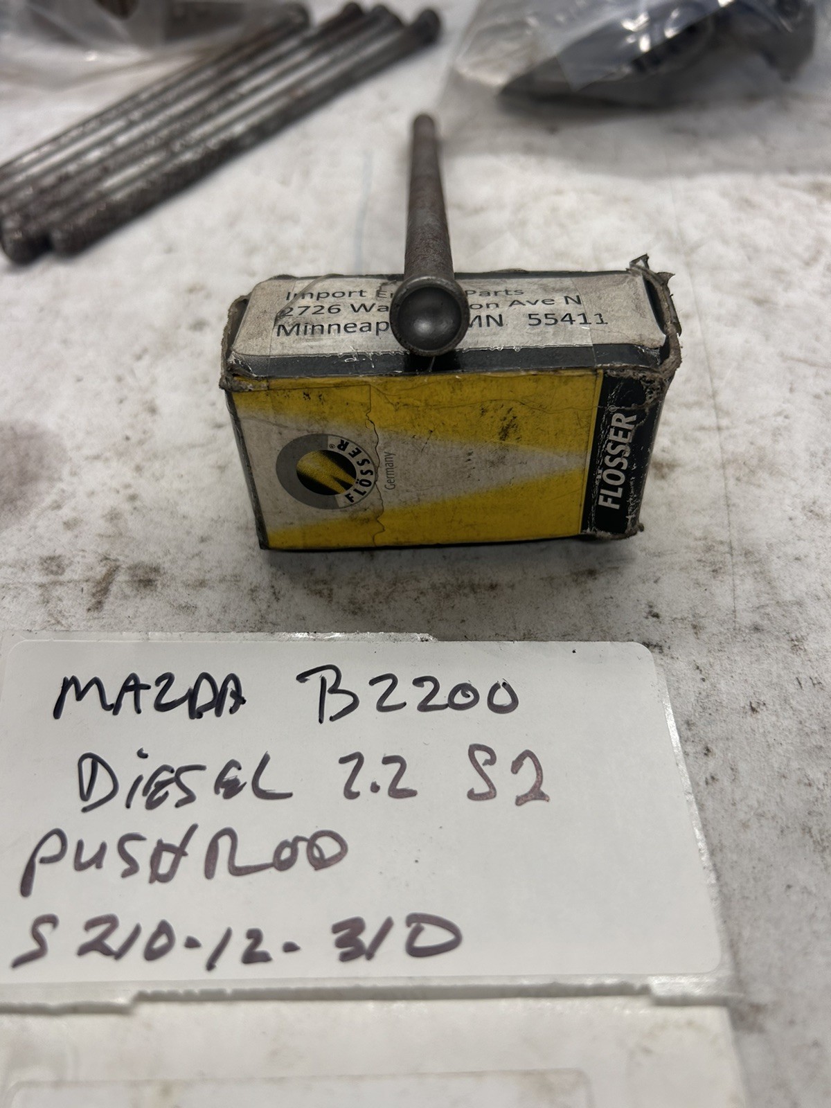 PUSH ROD \*USED\* FITS MAZDA B2200 DIESEL 2209cc "S2" OHV 8V 1982-1984 S210-12-310 \*OE MAZDA\* \*\*USED\*\* ALSO FITS FORD RANGER DIESEL 2209cc S2 OHV 8V 1982-1984 PUSH RODS ARE RUSTY SOLD AS EACH \*\*\*THIS PUSH ROD IS A "OE" FORD/MAZDA PART USED\*\*\* \*\*SOLD AS "EACH"\*\* \*\*\*\*NOTE, ALSO HAVE A COMPLETE ROCKER SHAFT ASSEMBLY4869-12-160A\*\*\*\* EVERY PART I HAVE LISTED ON MY SITE IS ON MY SHELF, NO DROP SHIPS FROM VENDORS THIS IS A USED PART, PLEASE MAKE SURE OF YOUR NEED AS NO RETURNS ON USED PARTS PLEASE CHECK CATALOG FOR CORRECT FITMENT, QUESTIONS? CALL ME