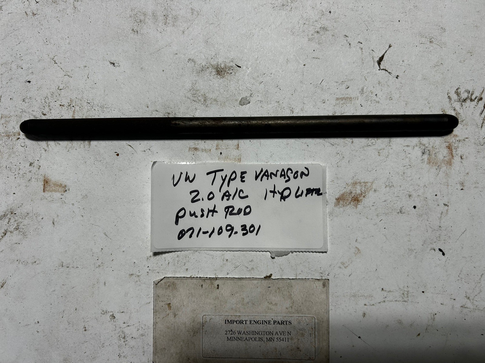 PUSHROD \*USED\* FITS VOLKSWAGEN VANAGON/TYPE II 1970cc 1977-1983 071-109-30A \*\*USED\*\* \*\*\*FITS HYDRAULIC LIFTER APPL. ONLY\*\*\* STEEL STYLE SEE PIC'S 260mm LONG ALSO HAVE PUSHROD FOR SOLID LIFTER 021-109-301A USED 270mm ALUM. HAVE CAMSHAFT 021-109-021L WITH "-2" AND "-3" WHEN ORDERING SPECIFY WANTS PLEASE MAKE SURE OF YOUR NEEDS, NO RETURNS ON USED PARTS \*\*OE VW'S\*\* \*\*\*EVERY PART NUMBER I HAVE LISTED IS ON MY SHELF, NO DROP SHIPS FROM VENDORS\*\*\* PLEASE NOTE THAT I USE "ITM" FOR MY CATOLOGING, NOT ALL PARTS SHIPPED WILL BE ITM'S \*\*\*PLEASE CHECK CATALOG FOR FITMENT, QUESTIONS? PLEASE CALL,THANKS\*\*\*