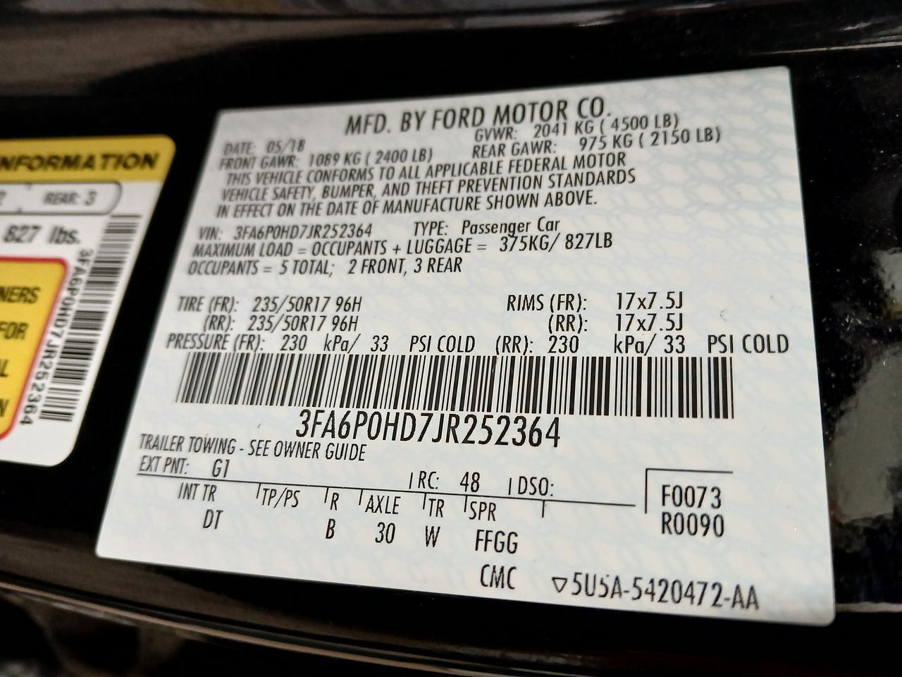 - VIN #: 3FA6P0HD7JR252364