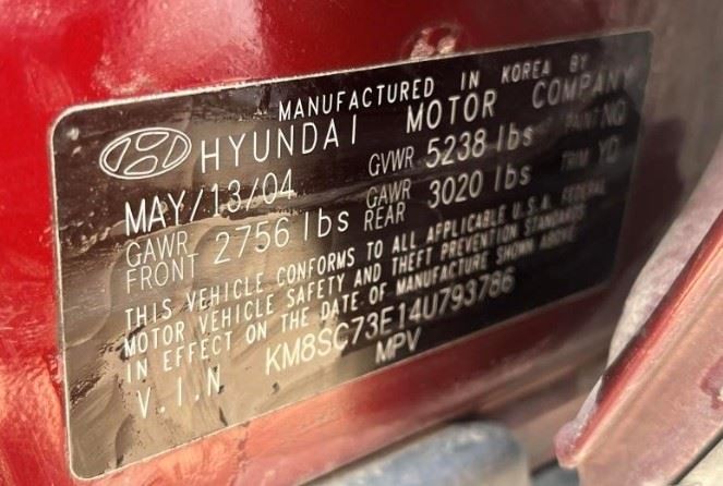 - Donor VIN: KM8SC73E14U793786