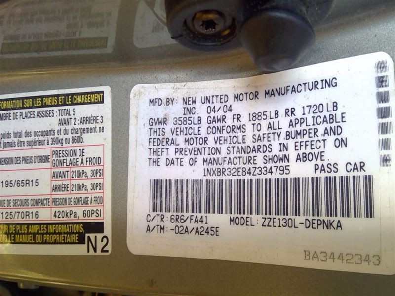 - Donor VIN: 1NXBR32E84Z334795