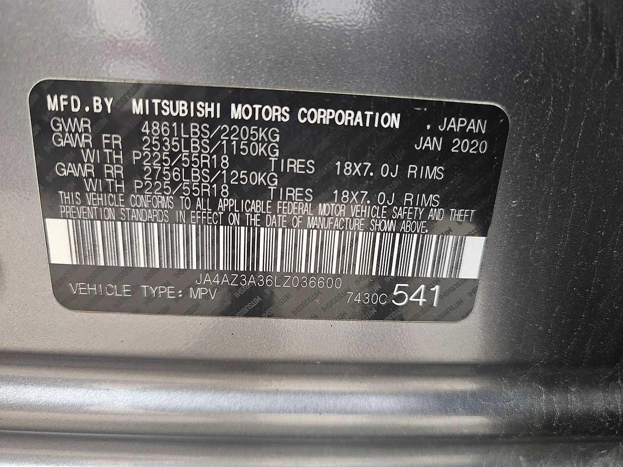 - VIN #: JA4AZ3A36LZ036600