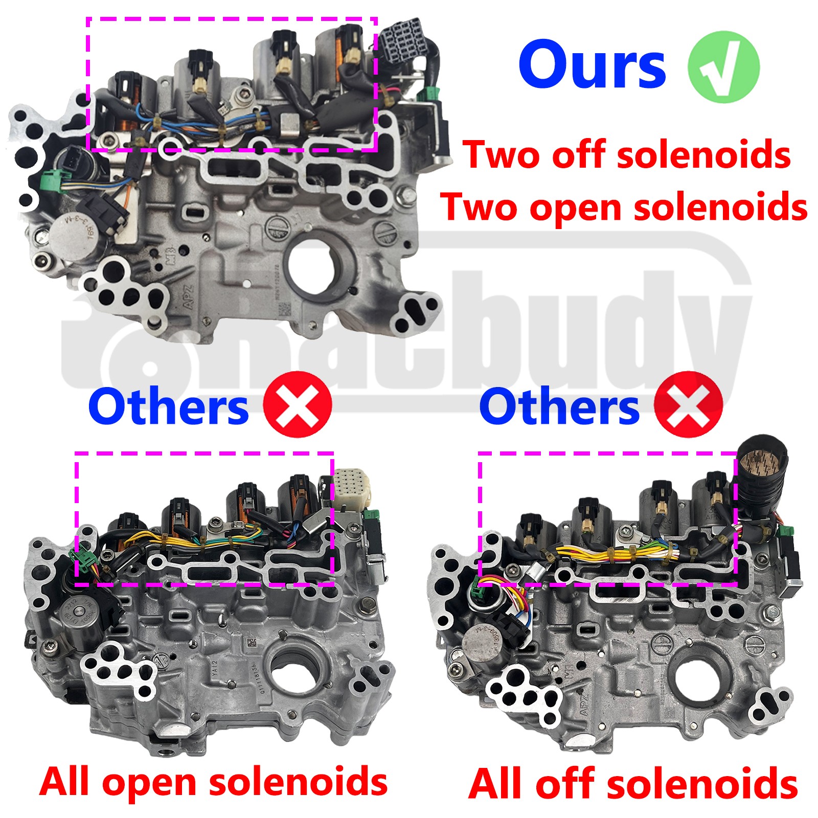 Product Description **Read Before Purchasing:** - There are 3 types of RE0F11A JF015E CVT Transmission Valve Body in our store: w/ 4 off solenoids or w/ 4 open solenoids or w/ 2 open & 2 off solenoids. (Please see the second pictures of our listing). This listing is w/ 2 off solenoids & 2 open solenoids. If you need the other type, please contact us. Before purchasing, please double check and confirm if this item fits for your need. If you could not confirm, please send us your VIN or pictures of your original valve body. - Our plugs come in various colors and shapes and are shipped randomly. Please rest assured that this will not affect your normal use. ****OE / ReplacePart Number:**** - RE0F11A - JF015E **Features:** - Item Type: Transmission Valve Body - Condition: Remanufatured - High Quality & High Performance - Easy to Install & Long Use Time - All the item will be tested before packing & shipping - Fast & Free Shipping from US LOCAL STOCK **Fitment:** - For Nissan AD Van 13-15 L4 1.5L 1.8L - For Nissan AD Van 13-15 L4 1.5L 1.8L - For Nissan Almera 12-15 L3 1.2L - For Nissan Bluebird SyLphy 12 L3 1.2L - For Nissan Cube 10-15 L3 1.2 L4 1.5 1.6L - For Nissan Dayz 13-15 L3 0.7L - For Nissan Grand Livina 13-15 L4 1.5L - For Nissan Juke 10-15 L3 1.2L L4 1.5 1.6L - For Nissan Livina 13-15 L4 1.5L 1.6L - For Nissan Livina Genesis 13-15 L4 1.5L 1.6L - For Nissan Lafesta 14-15 L4 1.5L 1.6L - For Nissan March 10-15 L3 1.2L - For Nissan Micra 11-15 L3 0.9L 1.2L - For Nissan Note 12-15 L3 1.2L L4 1.5L - For Nissan Nv200 13-15 L4 1.5L - For Nissan Pulsar 13-15 L4 1.6L - For Nissan Qashqai 12-15 L4 1.L - For Nissan Sentra 13-15 L4 1.8L - For Nissan Sunny 10-15 L4 1.5L 1.6L 1.8L - For Nissan Sylphy 12-15 L4 1.6L 1.8L 2.0L - For Nissan Tiida 11-15 L3 1.2L L4 1.5 1.6L 1.8L - For Nissan Versa 12-15 L4 1.6L 1.8L - For ChevroLet Spark 13-15 L4 1.0L - For Mitsubishi RVR 13-15 L4 1.8L - For Mitsubishi Toppo 13 L3 0.7L - For Mitsubishi A-Hatch 12 L3 1.1L - For Mitsubishi A-MPV 14-15 L3 0.7L - For Mitsubishi Attrage 13-15 L3 1.0L 1.2L - For Mitsubishi B-Sedan 13 L3 1.0L 1.2L - For Mitsubishi Ek-Wagon 13-15 L3 0.7L - For Mitsubishi I 12-13 L3 0.7L - For Mitsubishi Lancer 13-15 L4 1.5L 1.6L - For Mitsubishi GaLant Fortis 14-15 L4 1.8L - For Gm\\Daewoo Spark 13-15 L4 1.0L - For RenauLt Scala 12-15 L4 1.5L - For Suzuki A-CUV 13-15 L3 0.7L - For Suzuki Alto 10-15 L3 0.7L - For Suzuki A-Star 14-15 L3 1.0L - For Suzuki Cervo 10-11 L3 0.7L - For Suzuki Lapin 11-15 L3 0.7L - For Suzuki Mr Wagon 11-15 L3 0.7L - For Suzuki PaLette 10-13 L3 0.7L - For Suzuki SoLio 11-15 L4 1.2L - For Suzuki Spacia 13-15 L3 0.7L - For Suzuki Swift 11-15 L4 1.2L 1.3L 1.4L - For Suzuki Wagon R 11-15 L3 0.7L **Package Includes:** - 1\*CVT Transmission VaLve Body **Note:** - Even if you find your car modeL in the description List it might not be suitabLe because of the variaties of modifications. If you are not sure about part fitment pLease write us the VIN number (Chassis No.) of your car and we wiLL check if the part fits specificaLLy your vehicLe. - Communication is the best way to soLve probLem. If you have any questions or any need, pLease feeL free to contact us, and we wiLL try our best to heLp you. S&H will be determined based upon the ship to address. Shipping Policy Order will be handled within 2 working days( Excluding Weekends and Public Holidays) after your payment clear. We ship to Order Detail confirmed address ONLY. Transit times are provided by the carrier, exclude weekends and holidays, and may vary with package origin and destination, particularly during peak periods. Please obtain the RMA number & returned address for any return items. Return items MUST have all ORIGINAL packaging and accessories. We will replace items which are malfunctioning, for 60 days from the date you received.Items which have physical abuse are not covered by the warranty. we will reply you within 24 hour.