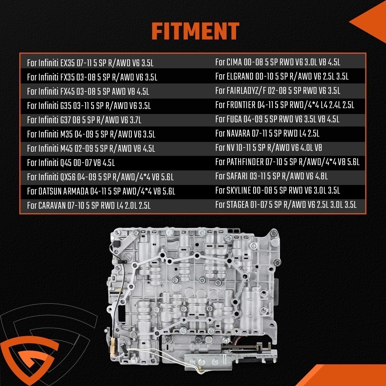 **Description:** The automatic transmission can automatically change the transmission ratio according to the engine load and vehicle speed, so that the car can obtain good power and fuel economy, and reduce engine emission pollution. Suitable for Nissan Infiniti gearbox valve body TCU valve body oil circuit board assembly RE5R05A. **Note:** Please make sure the interchange part number matches the part you are replacing. Please check our photos and make sure the part shown looks identical to your stock one. **Compatibility:** For Nissan Xterra For Nissan Pathfinder For Nissan Armada For Nissan Frontier For Nissan Titan For Infinity FX35 For Infinity G35 **Specifications:** Part Number: RE5R05A Size: Approx. 12.5×9.4×3.7" Package size: 42×30×18cm Gross weight: 6.6kg **Features:** It is remanufactured, but 100% perfect condition, with excellent performance. Professional manufacturing, high performance and durable. Easy installation, fit for Nissan Infiniti. **Package Included:** 1 × RE5R05A Valve Body